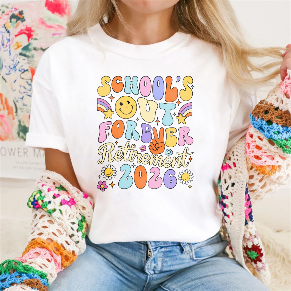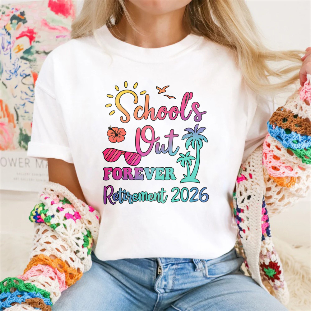 Clottya Schools Out Forever Retirement 2026 T-shirt Summer Vacation Gift For Teachers$22.99 USD$39.99 USD
