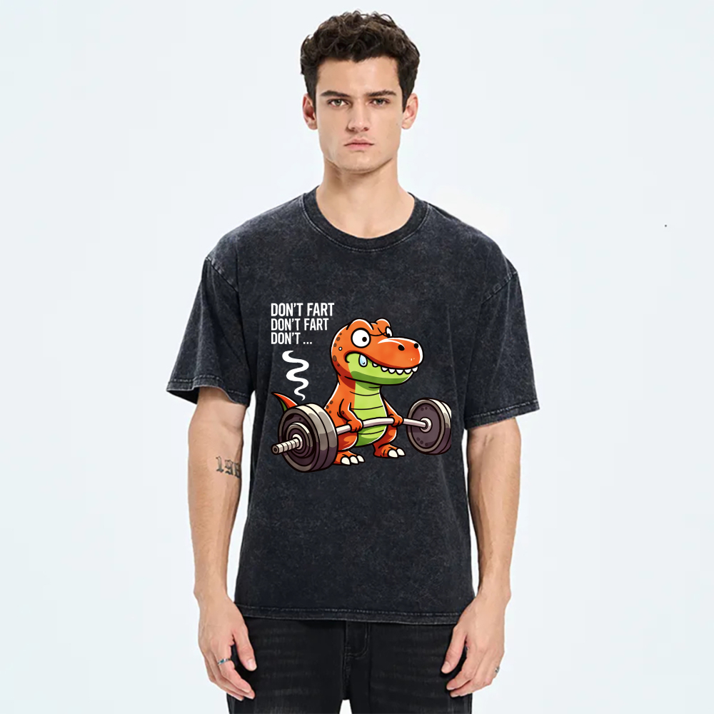 Clottya Unisex Washable T-shirt Dinosaur Lifting Weight Farting Funny