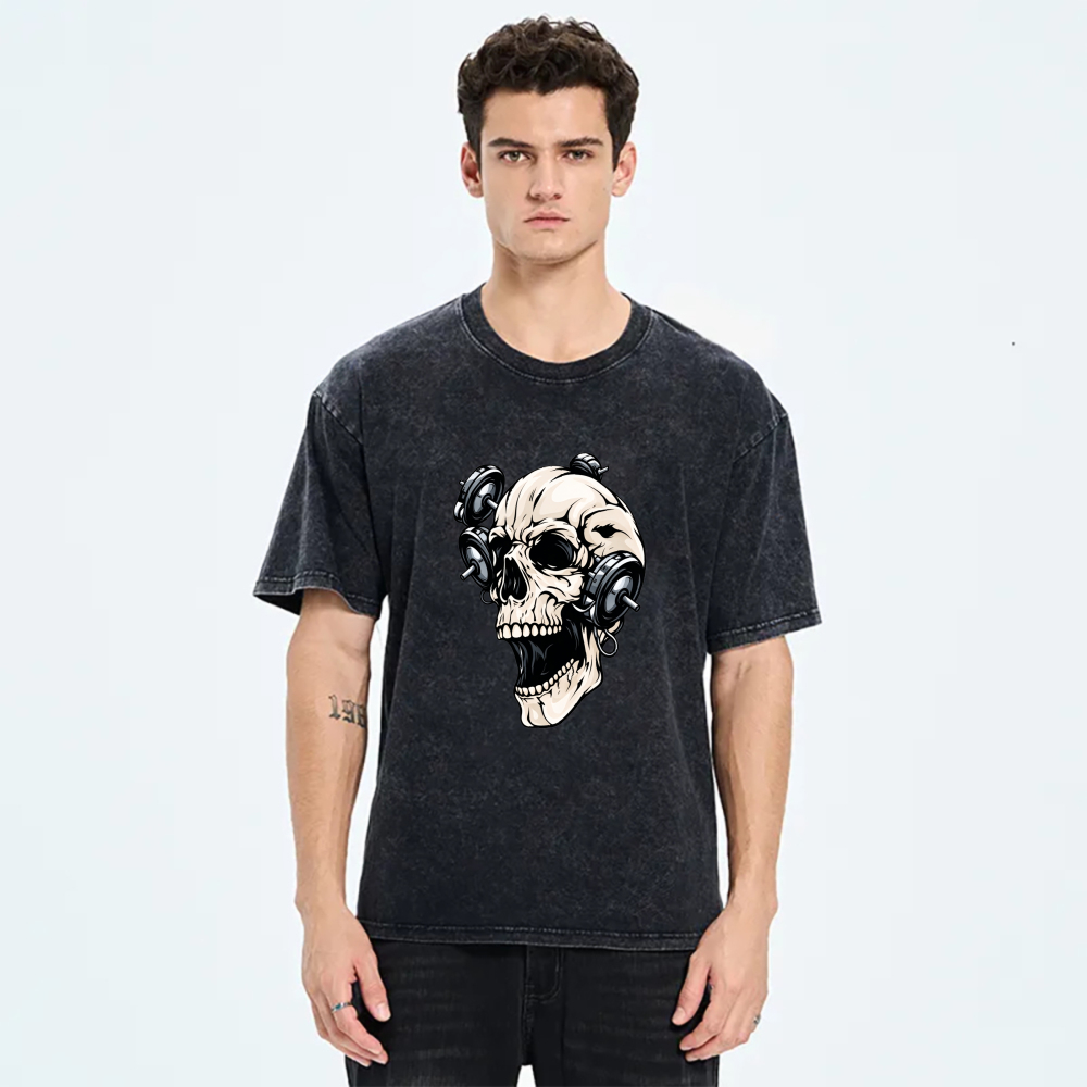 Clottya Unisex Washable T-shirt Skull With Headphones And Goggles