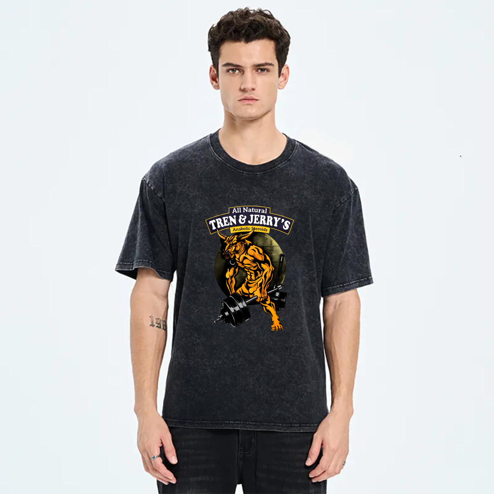 Clottya Unisex Washable T-shirt Muscular Bull Lifting Barbell With Brand Logo