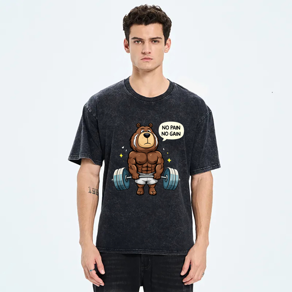 Clottya Unisex Washable T-shirt Bear Lifting Weight No Pain No Gain