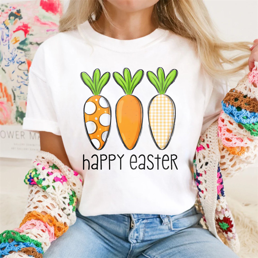 Clottya Carrot Pattern Happy Easter T-shirt Spring Holiday Wear
