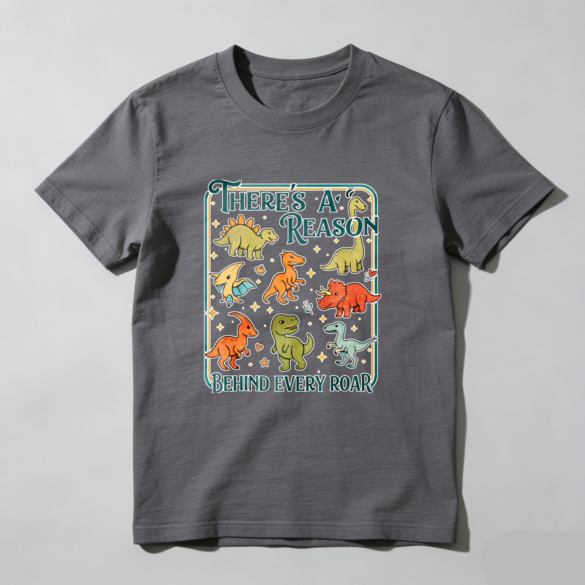 Clottya Dinosaur And Text Design T-shirt Summer Casual Wear