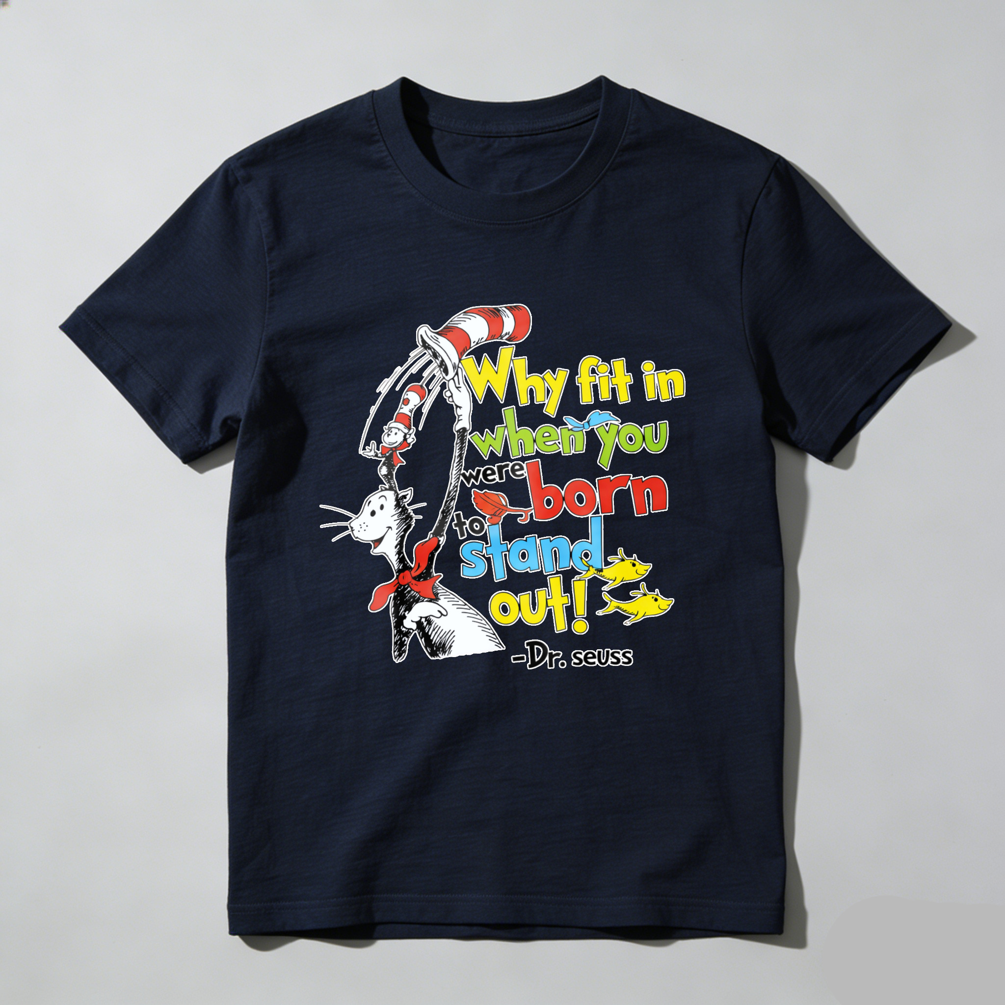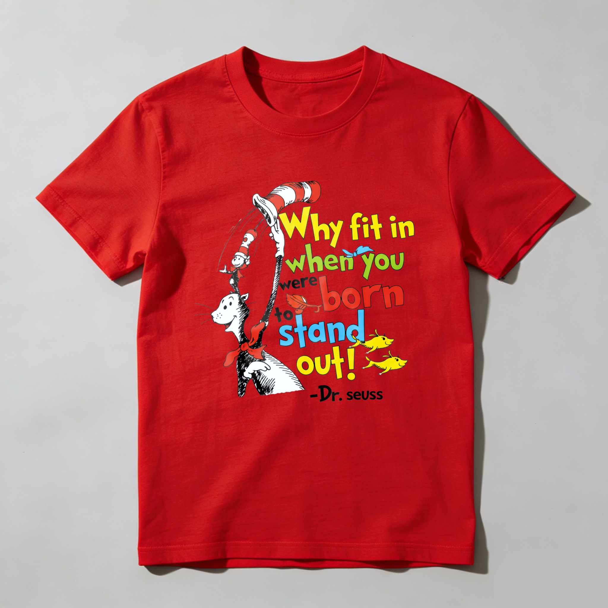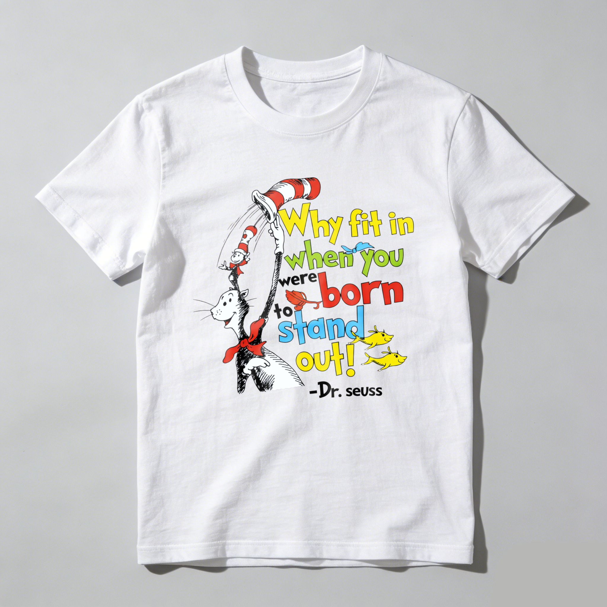 Clottya Dr Seuss Cat In The Hat Why Fit In When You Were Born To Stand Out T-shirt Summer Casual Wear
