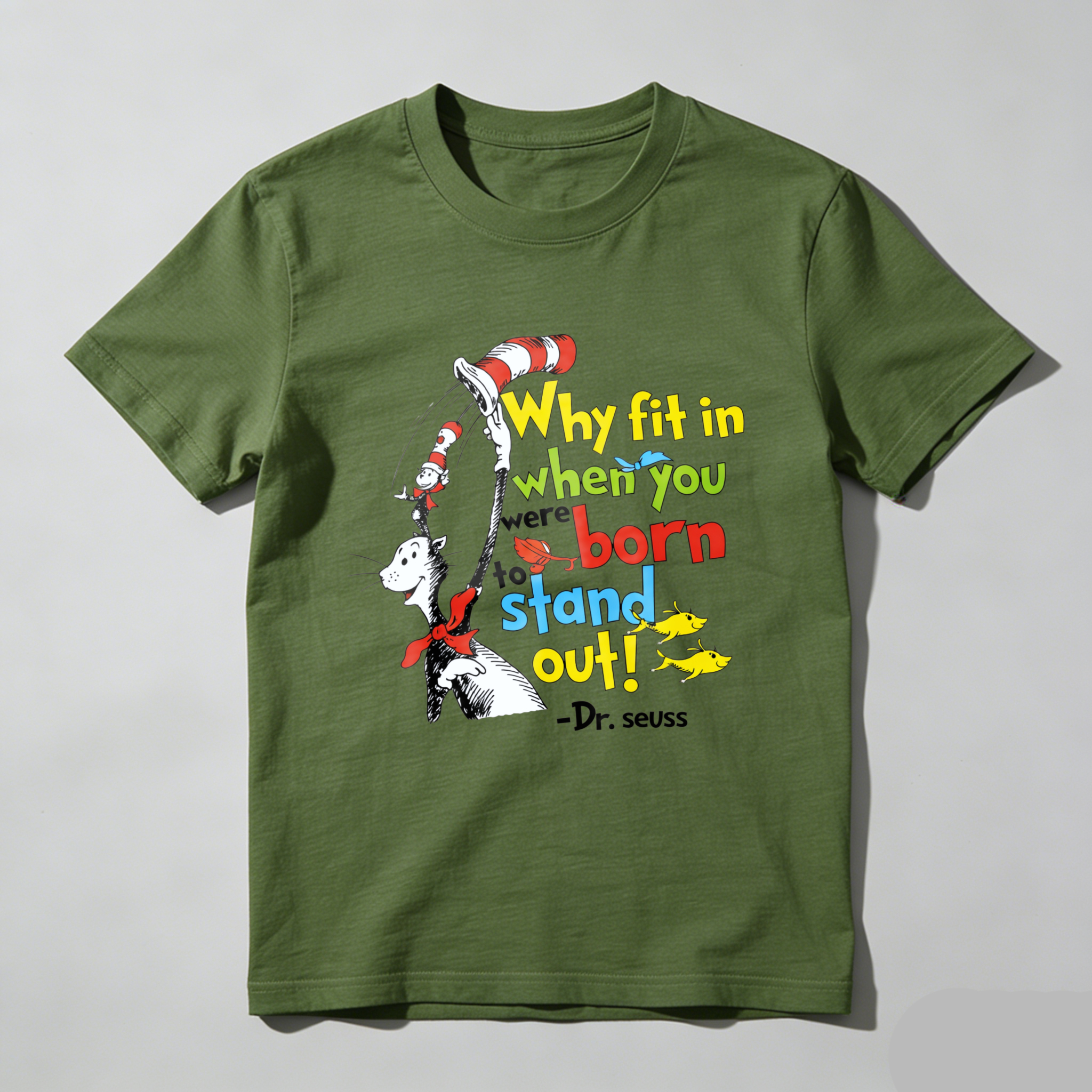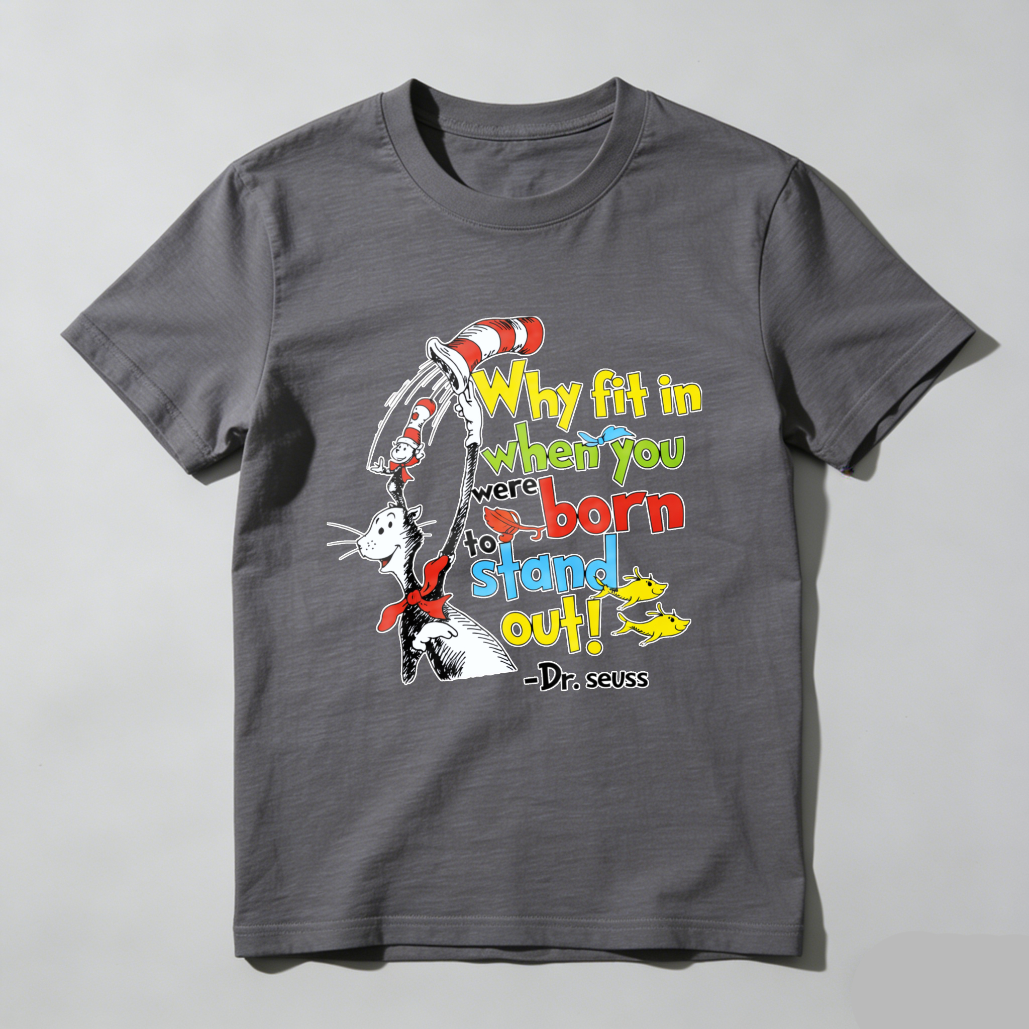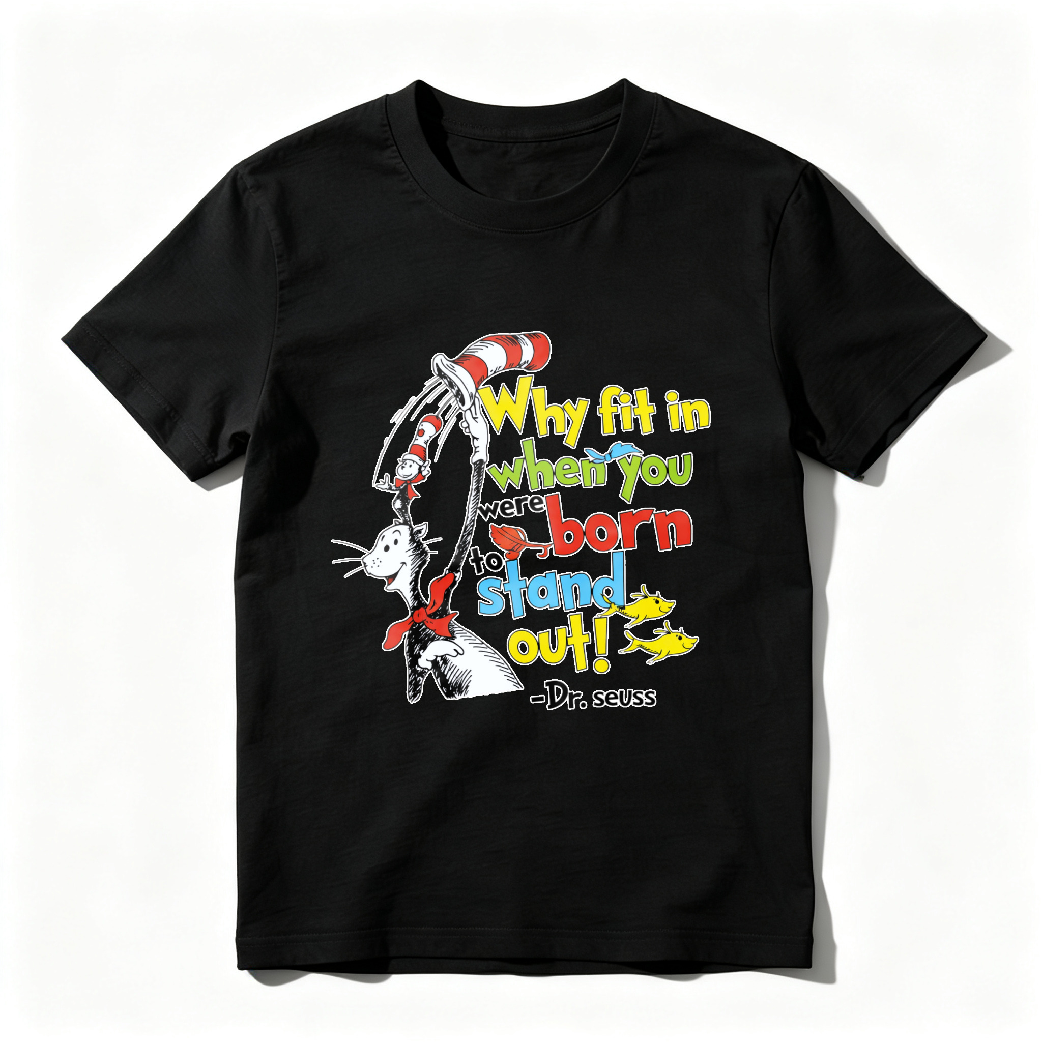 Clottya Dr Seuss Cat In The Hat Why Fit In When You Were Born To Stand Out T-shirt Summer Casual Wear