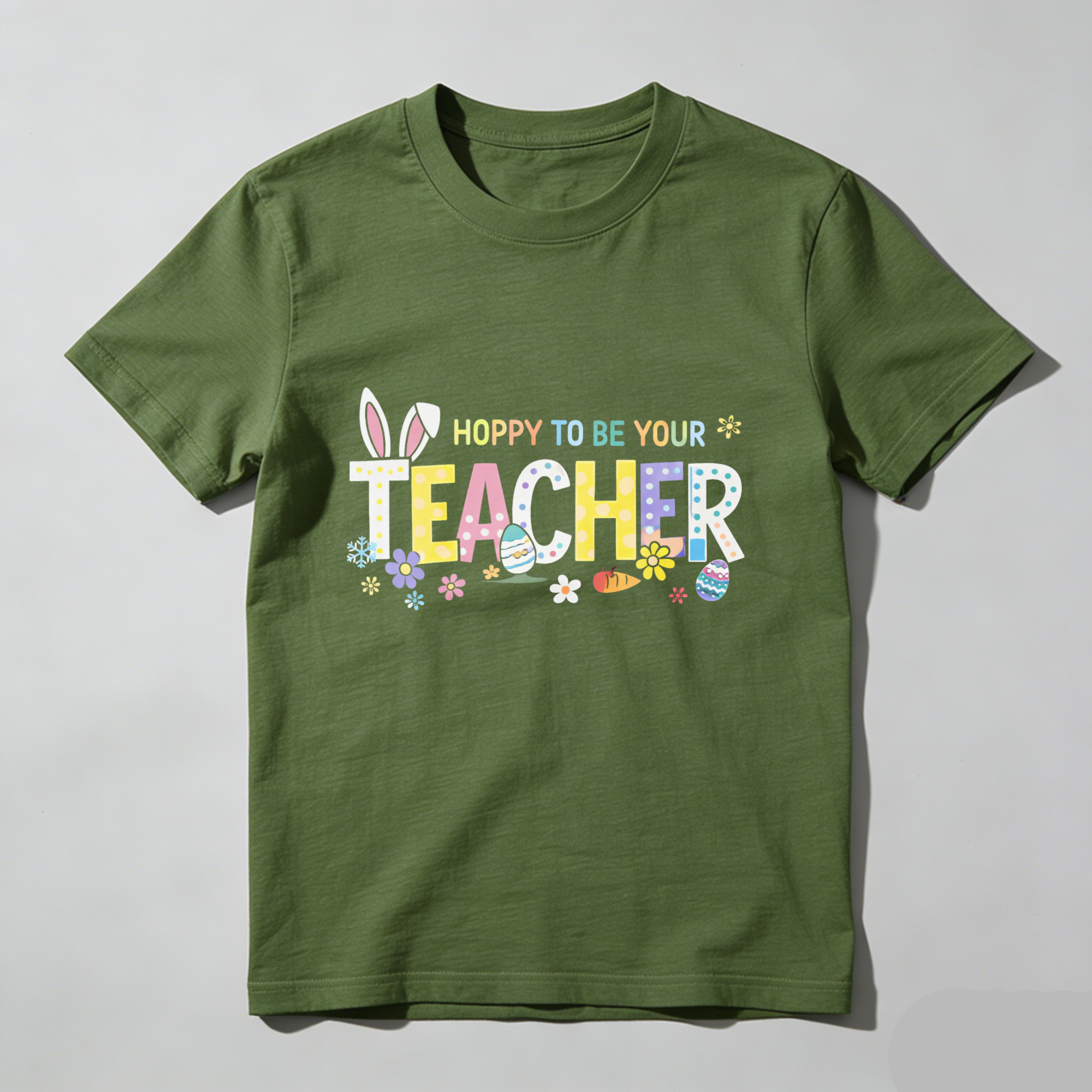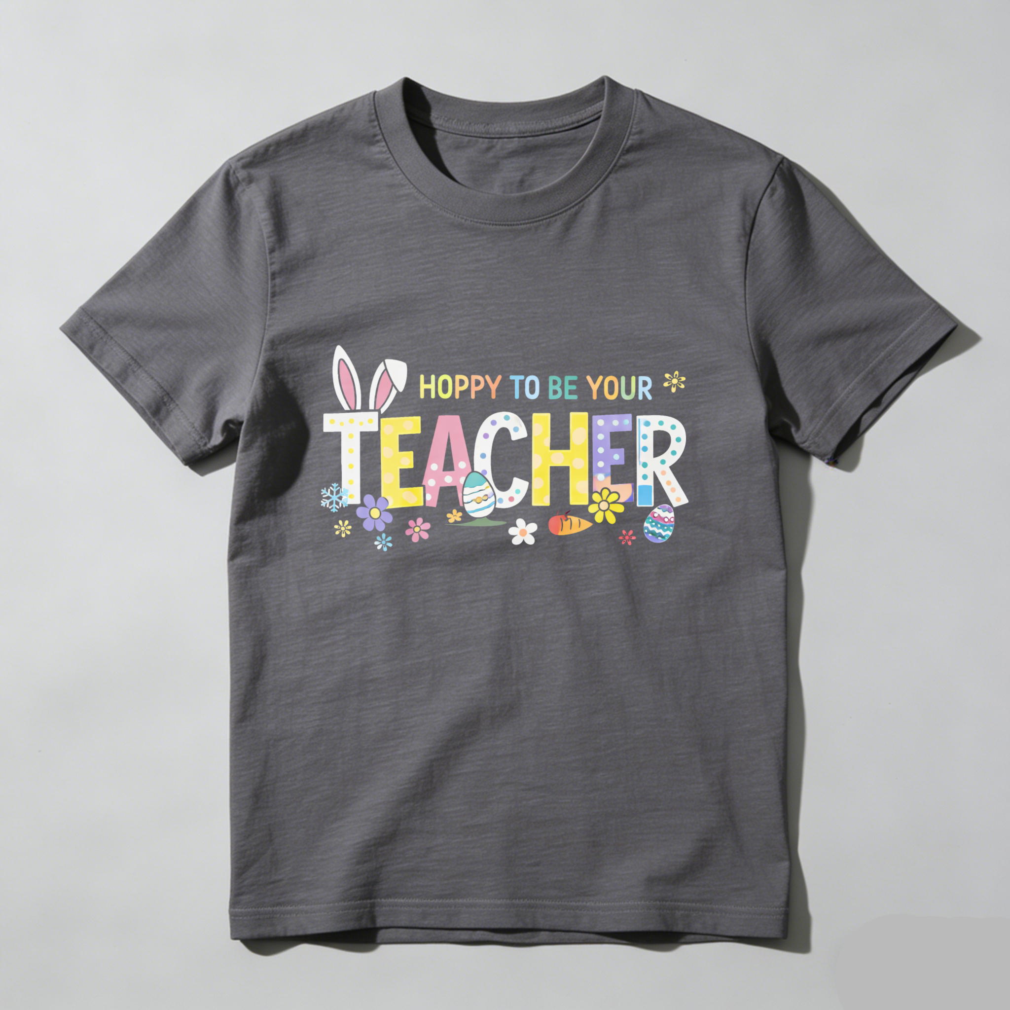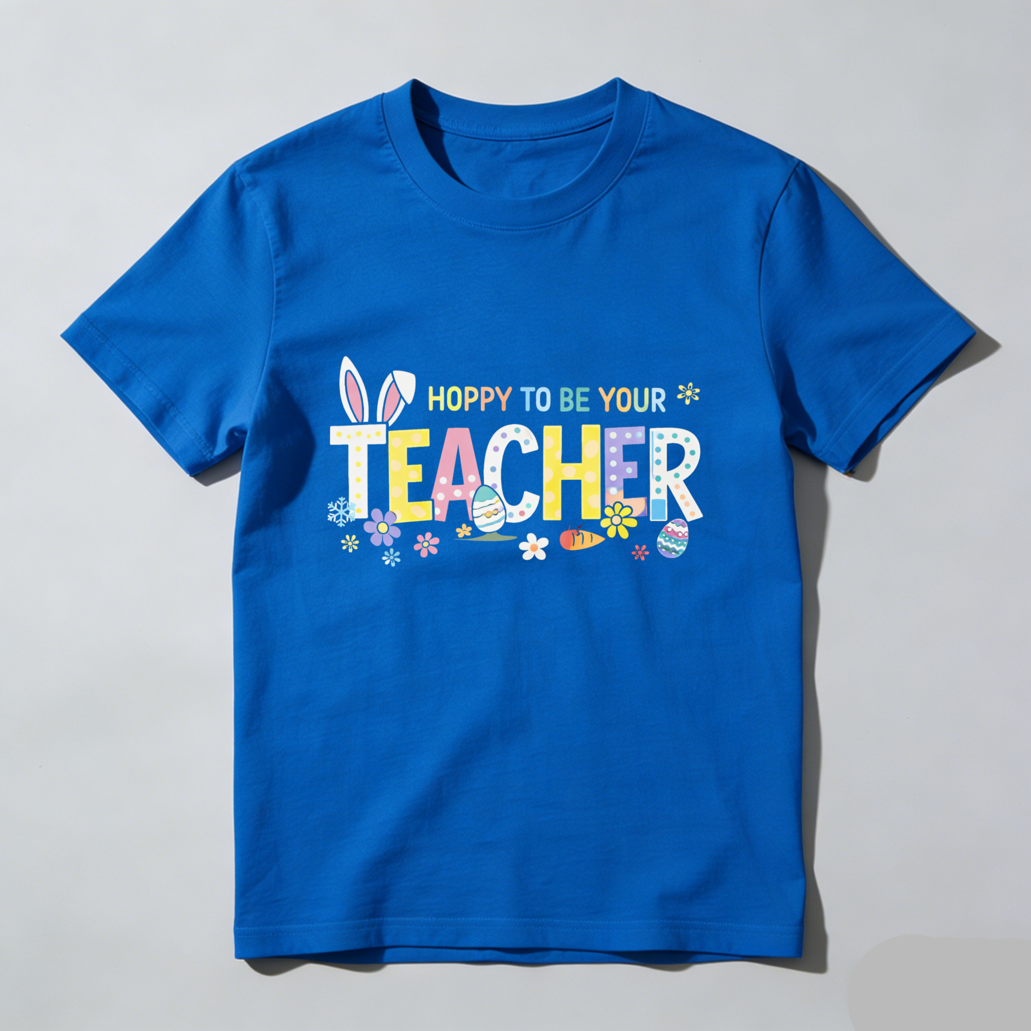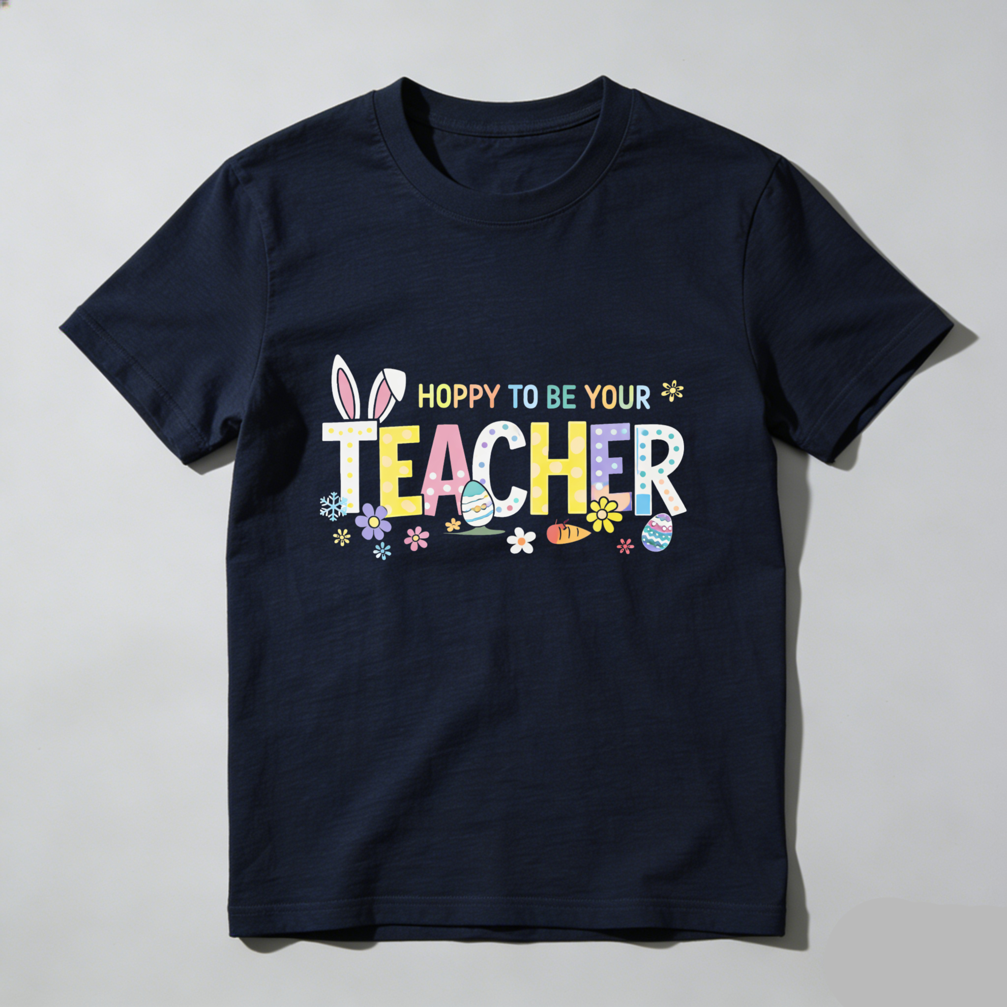 Clottya Easter Bunny And Eggs Pattern With Hoppy To Be Your Teacher Text T-shirt Spring And Easter Season
