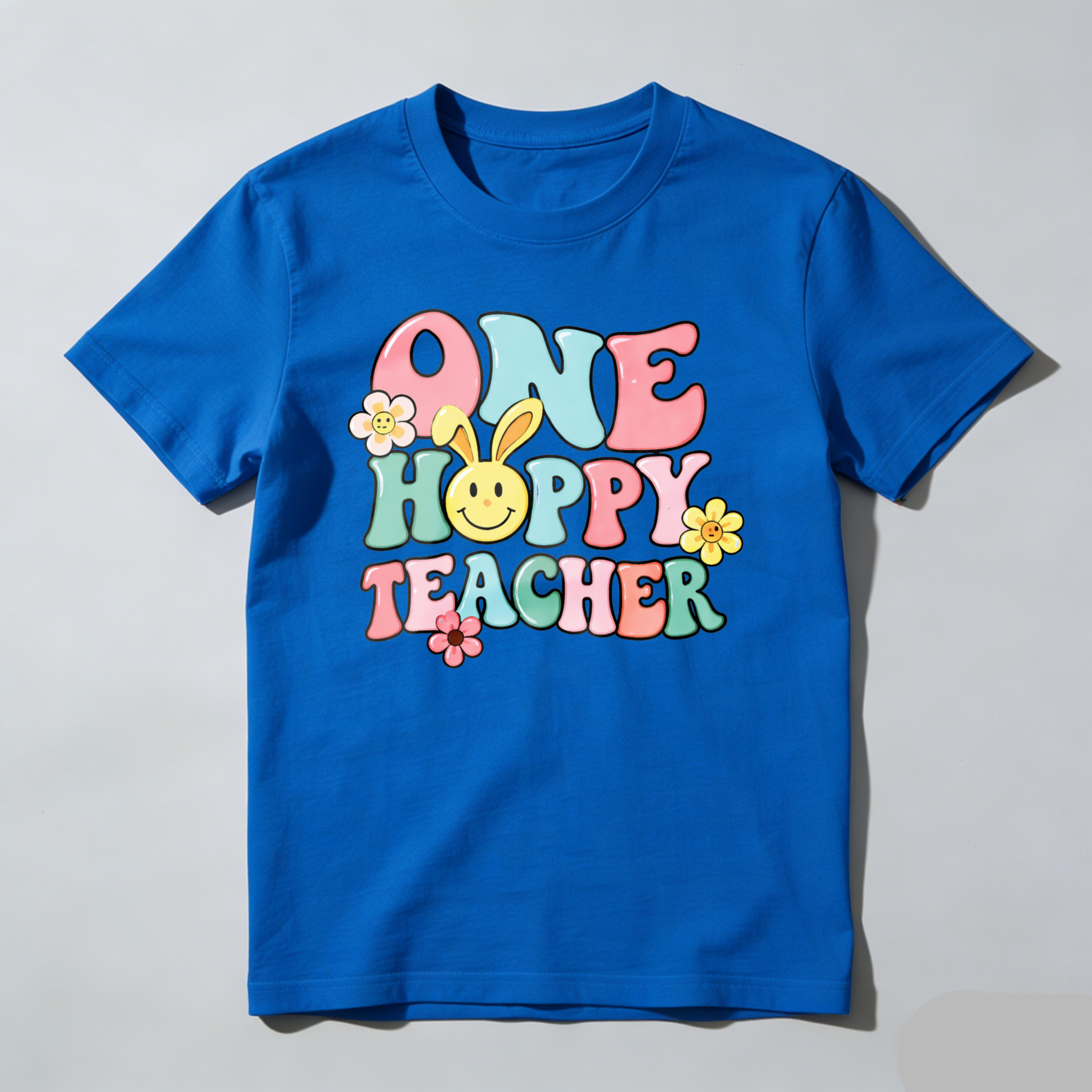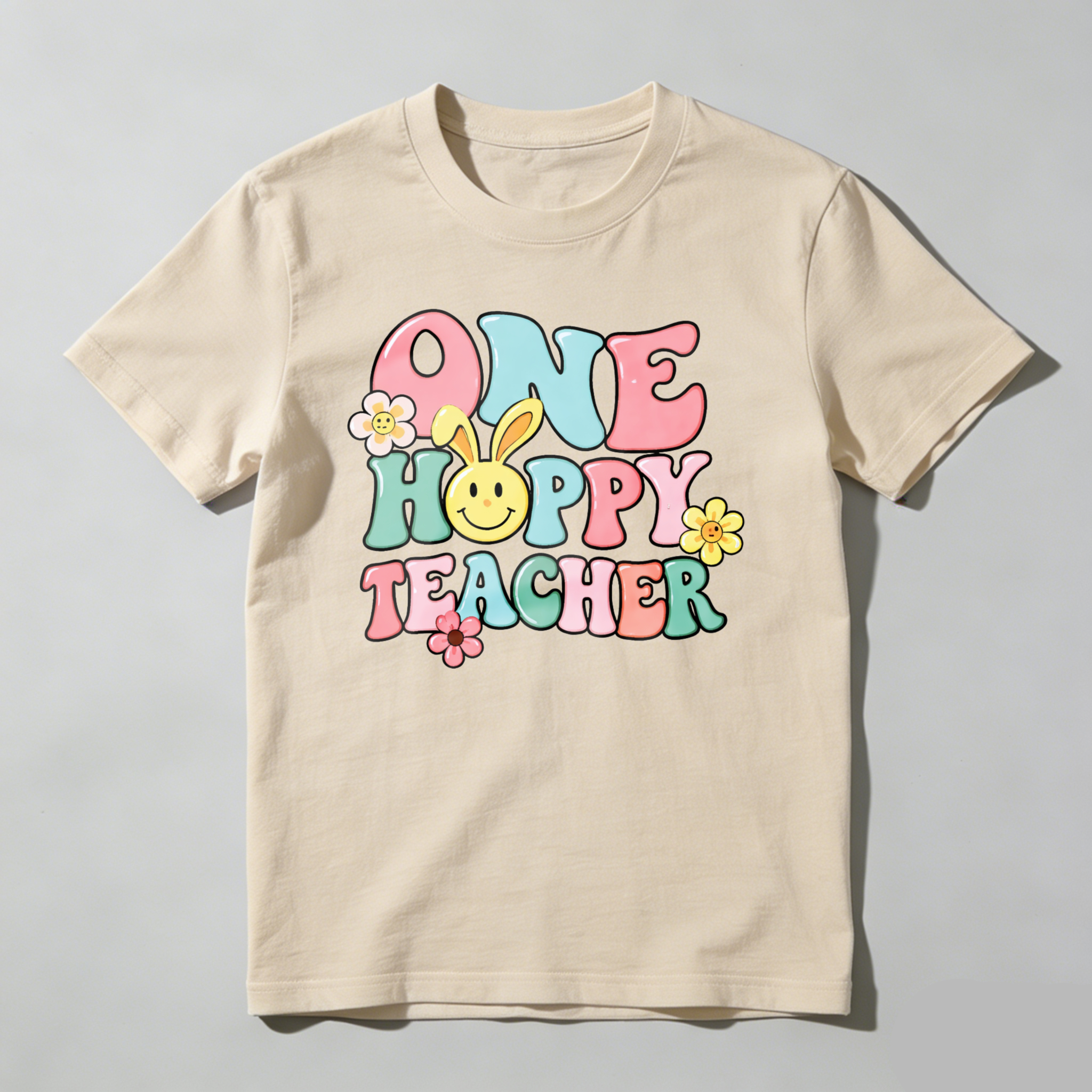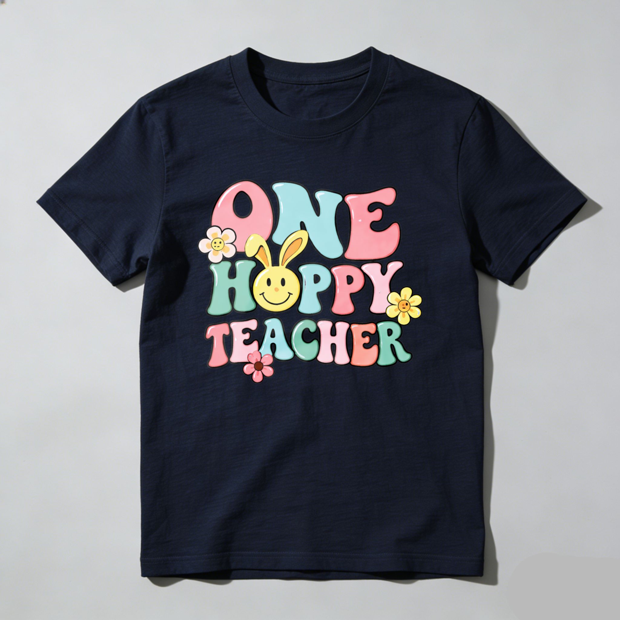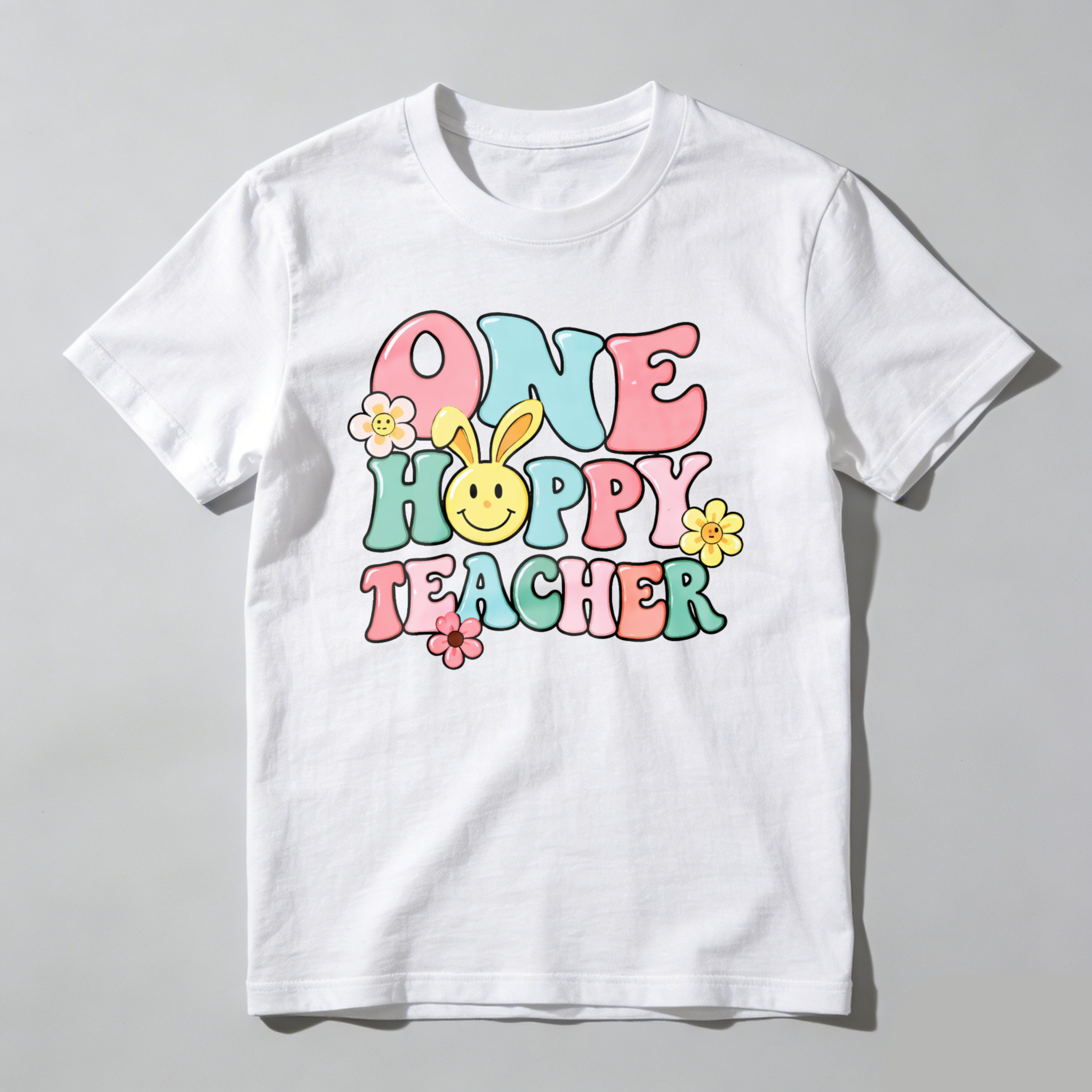 Clottya One Happy Teacher With Bunny And Flowers T-shirt Spring Summer Casual Wear