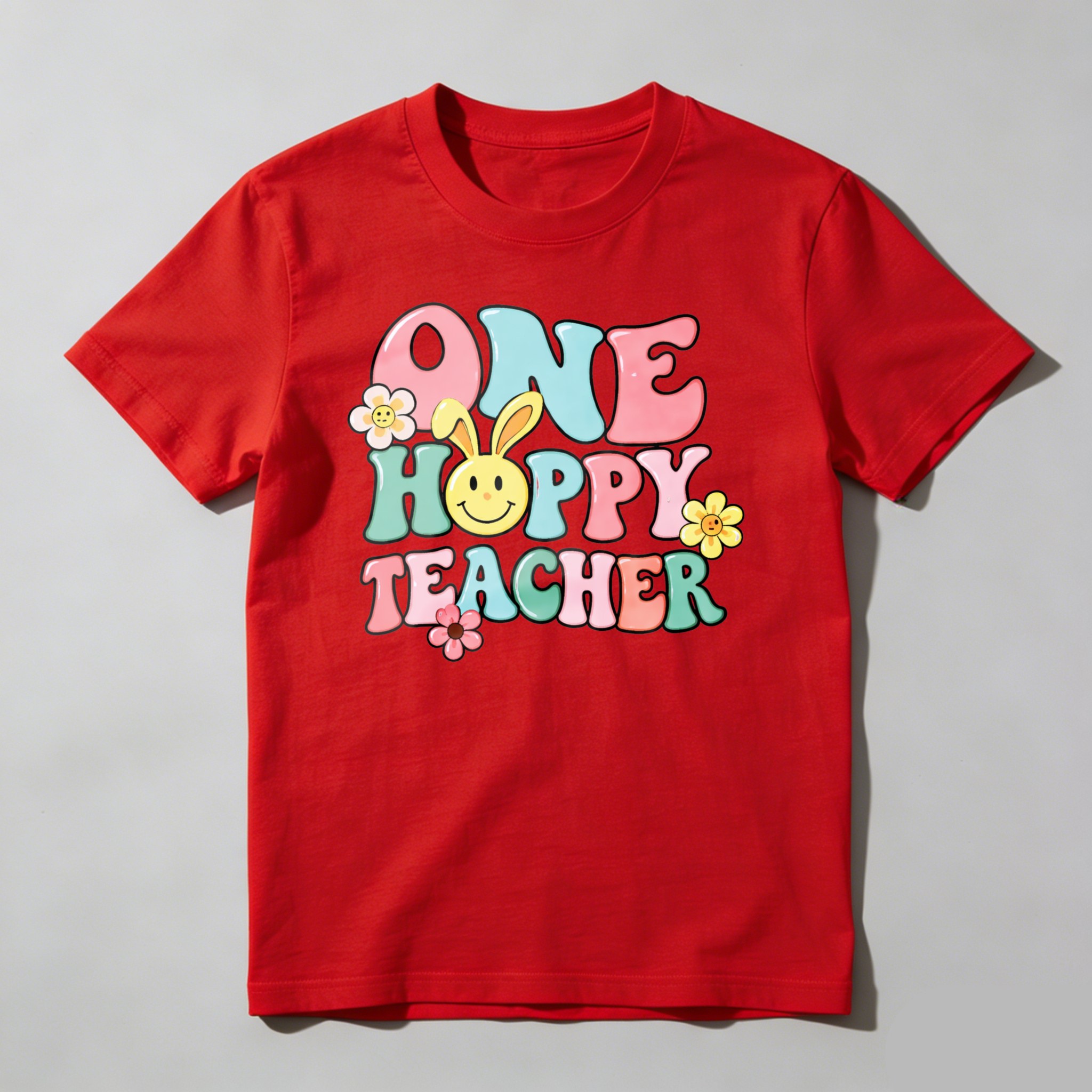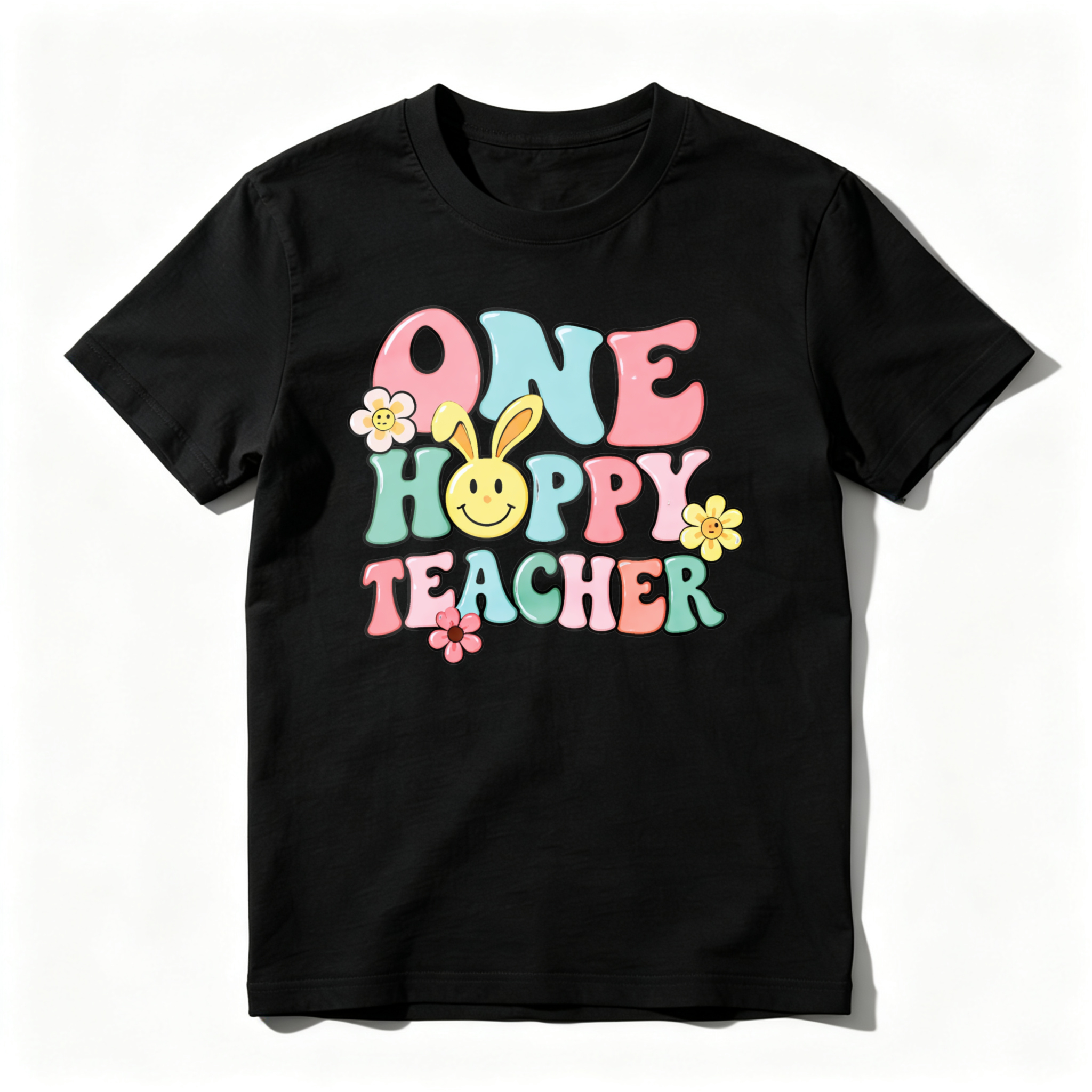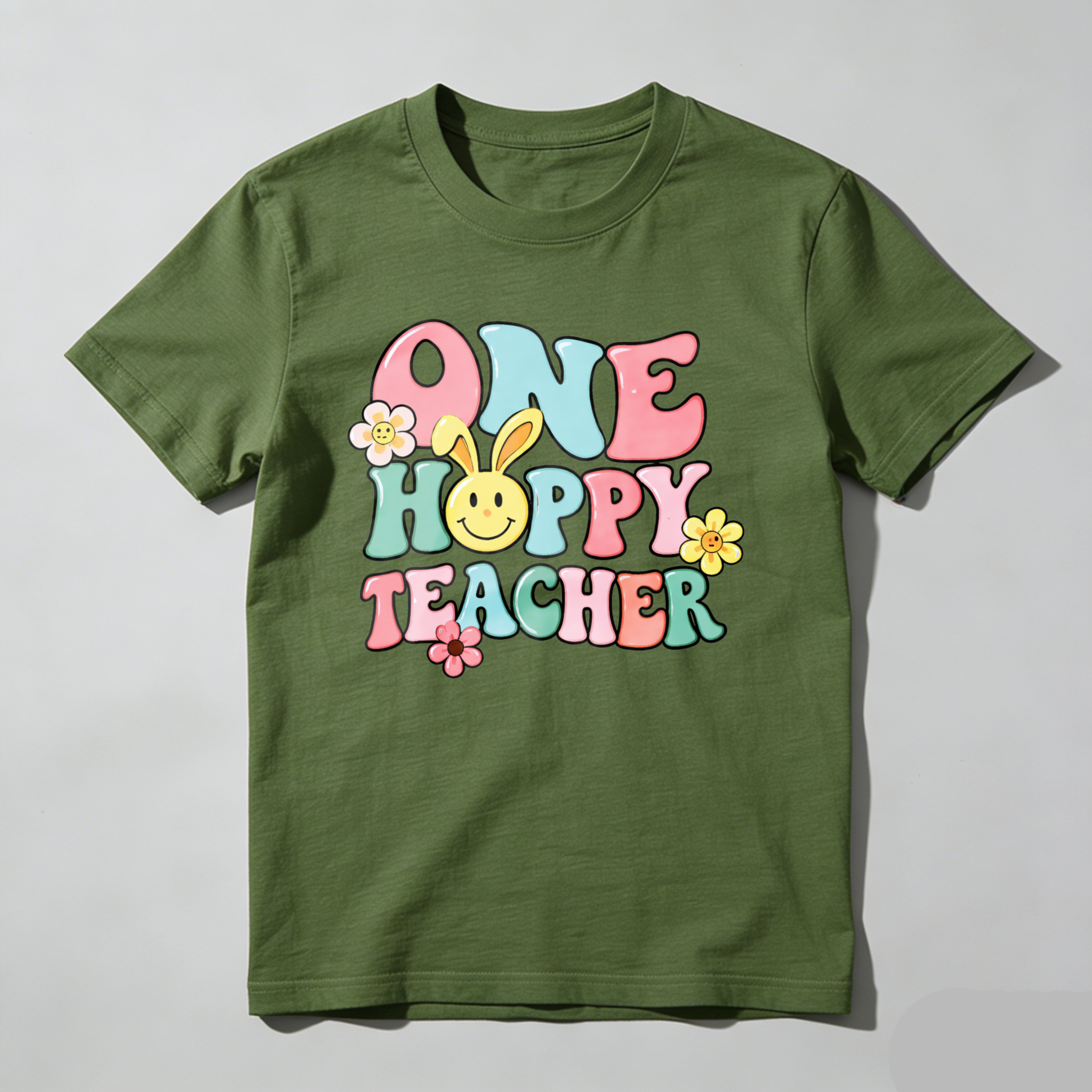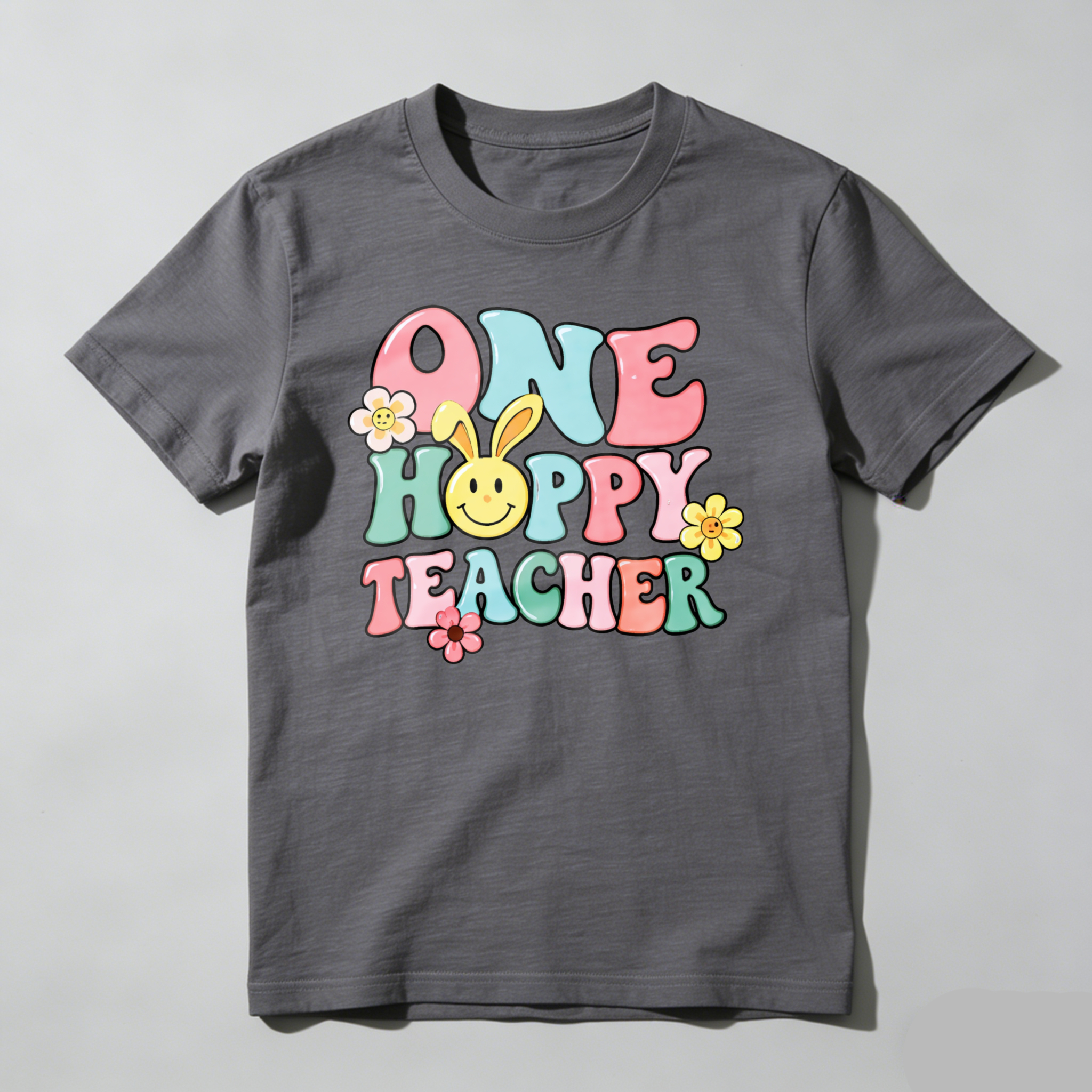 Clottya One Happy Teacher With Bunny And Flowers T-shirt Spring Summer Casual Wear