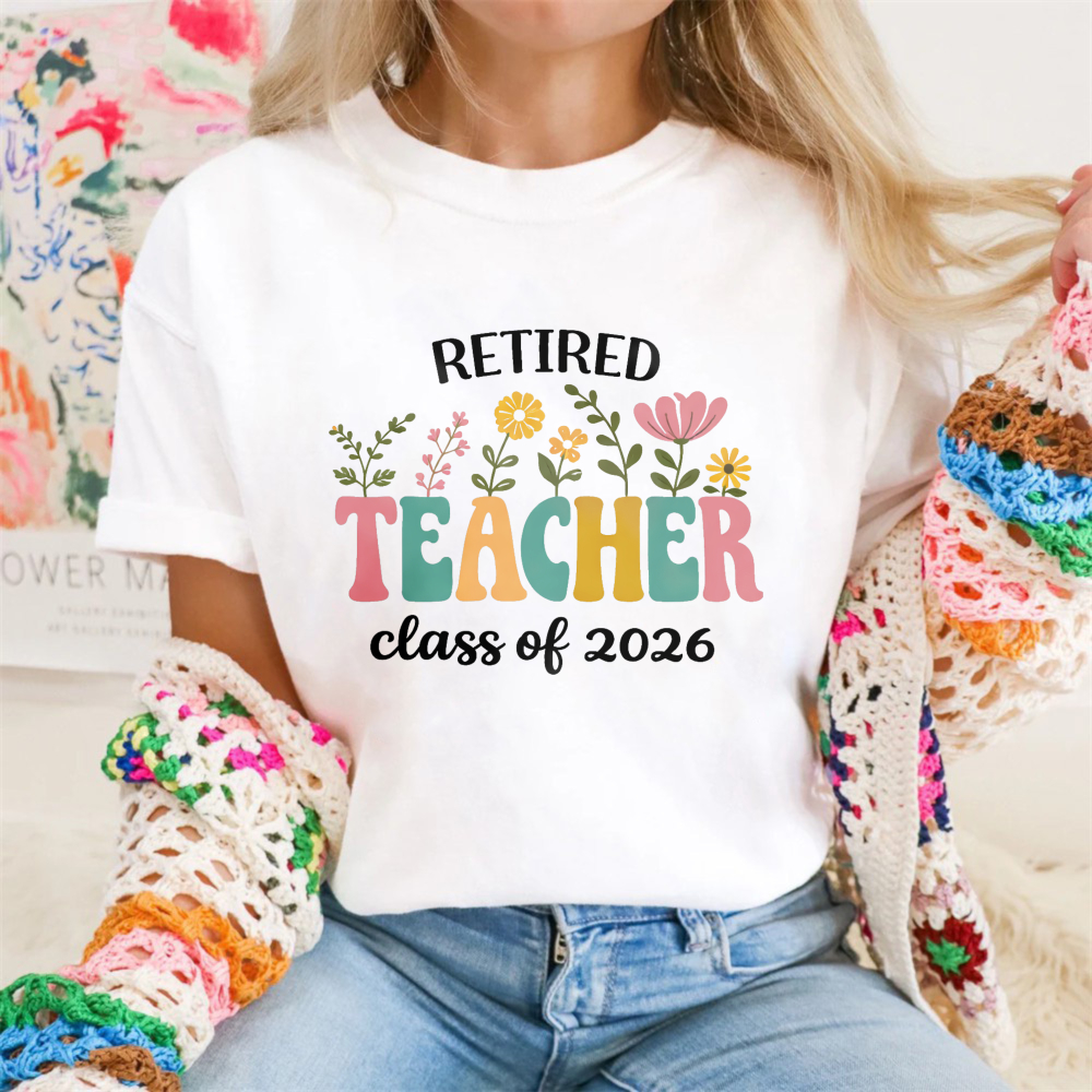 Clottya Retired Teacher Class Of 2026 Floral Design T-shirt Summer Casual Wear