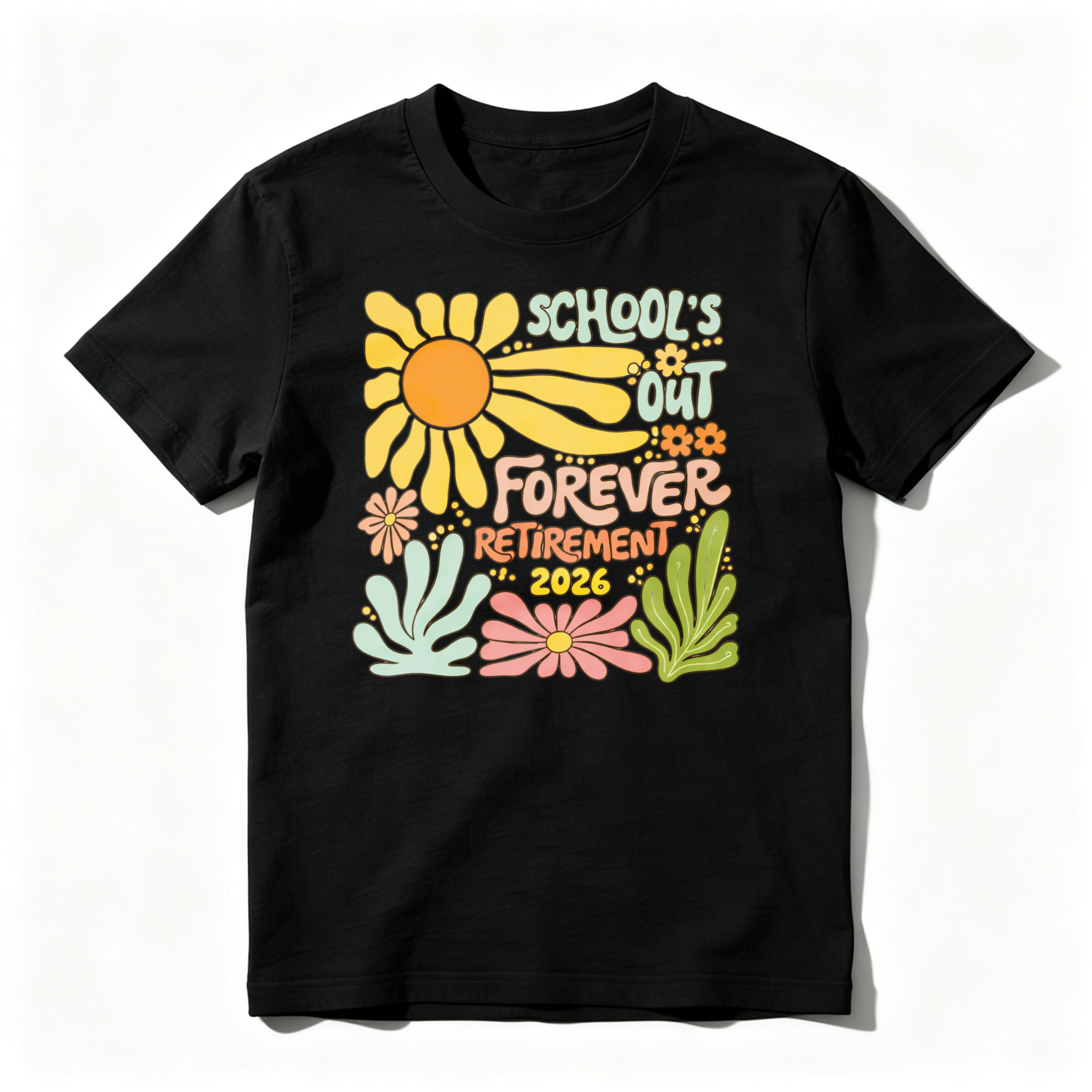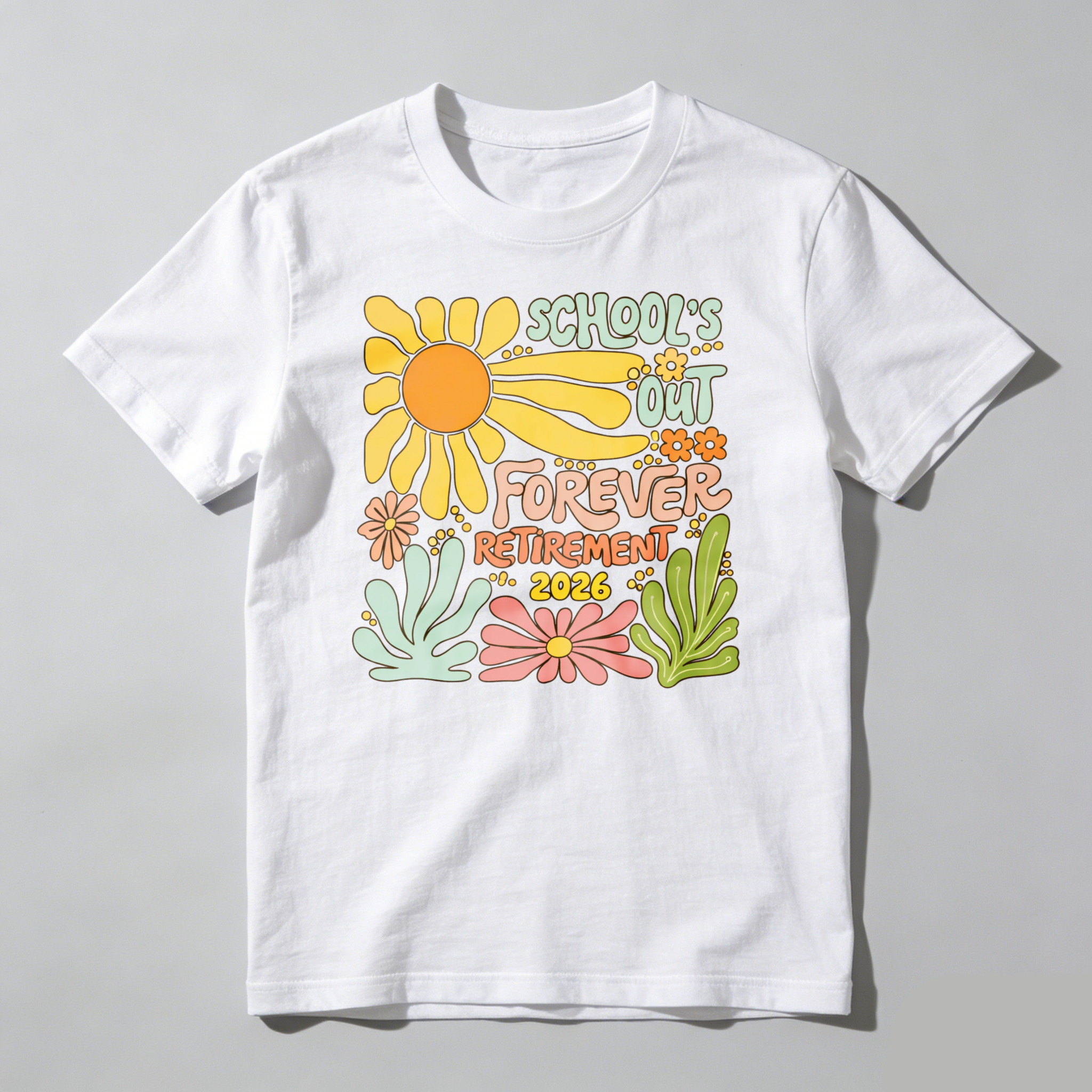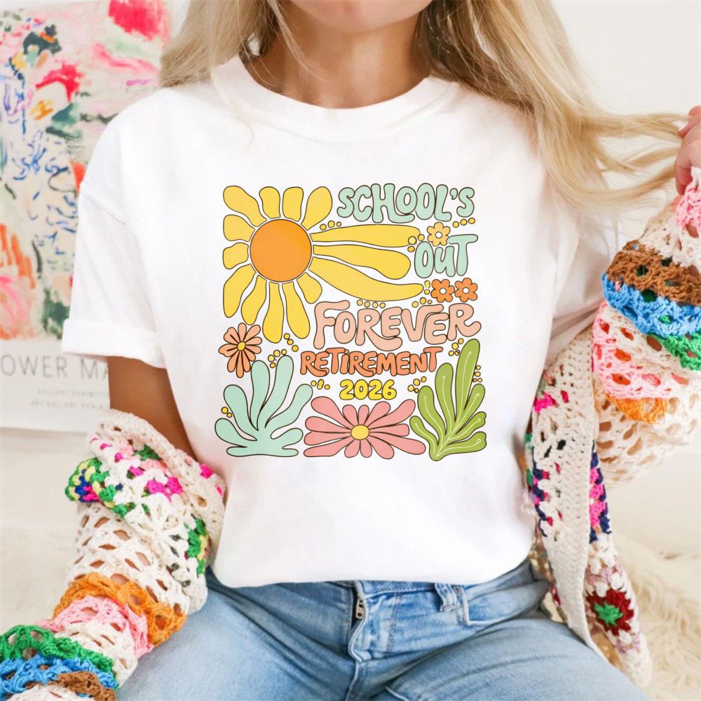 Clottya Schools Out Forever Retirement 2026 Flower Design T-shirt Summer Casual Wear