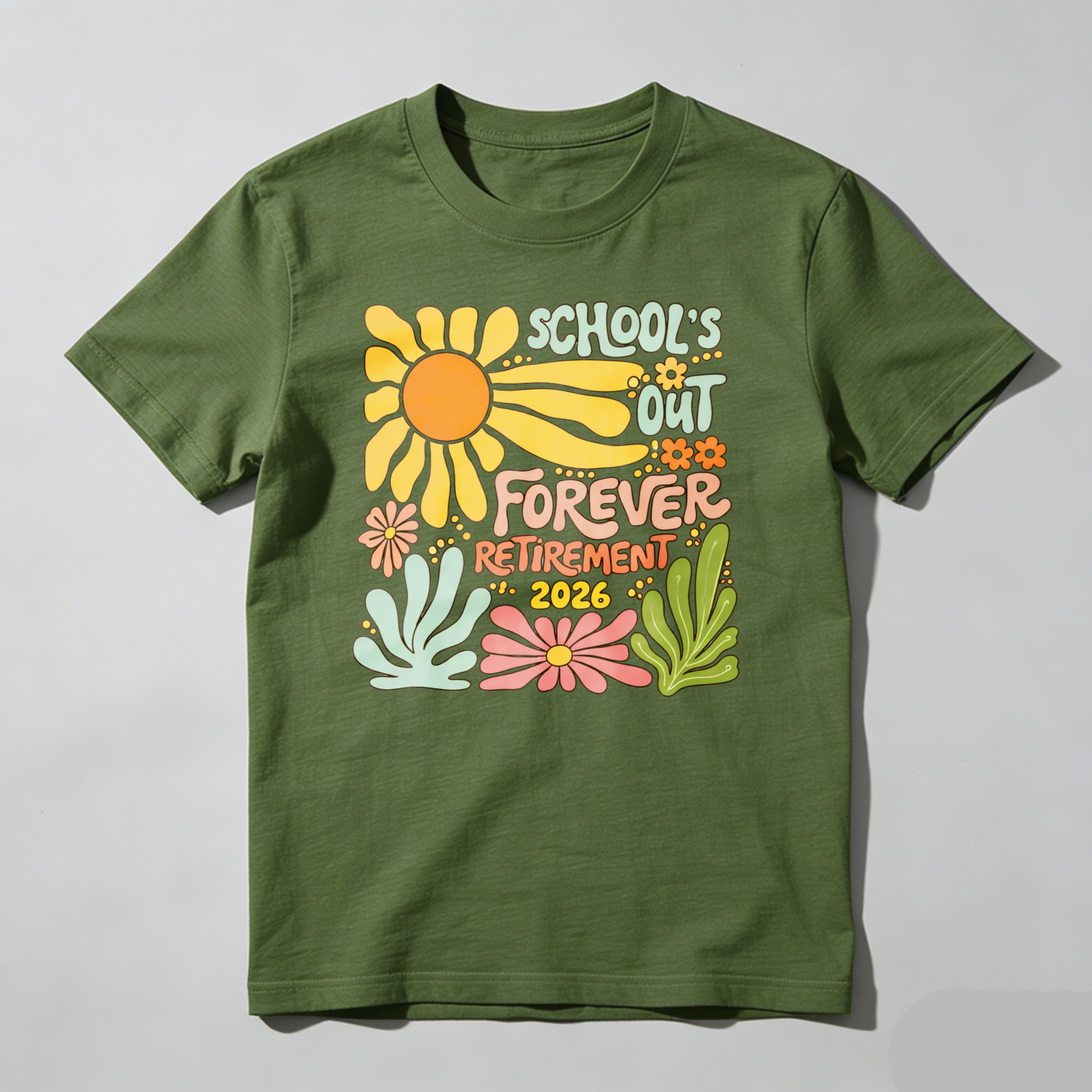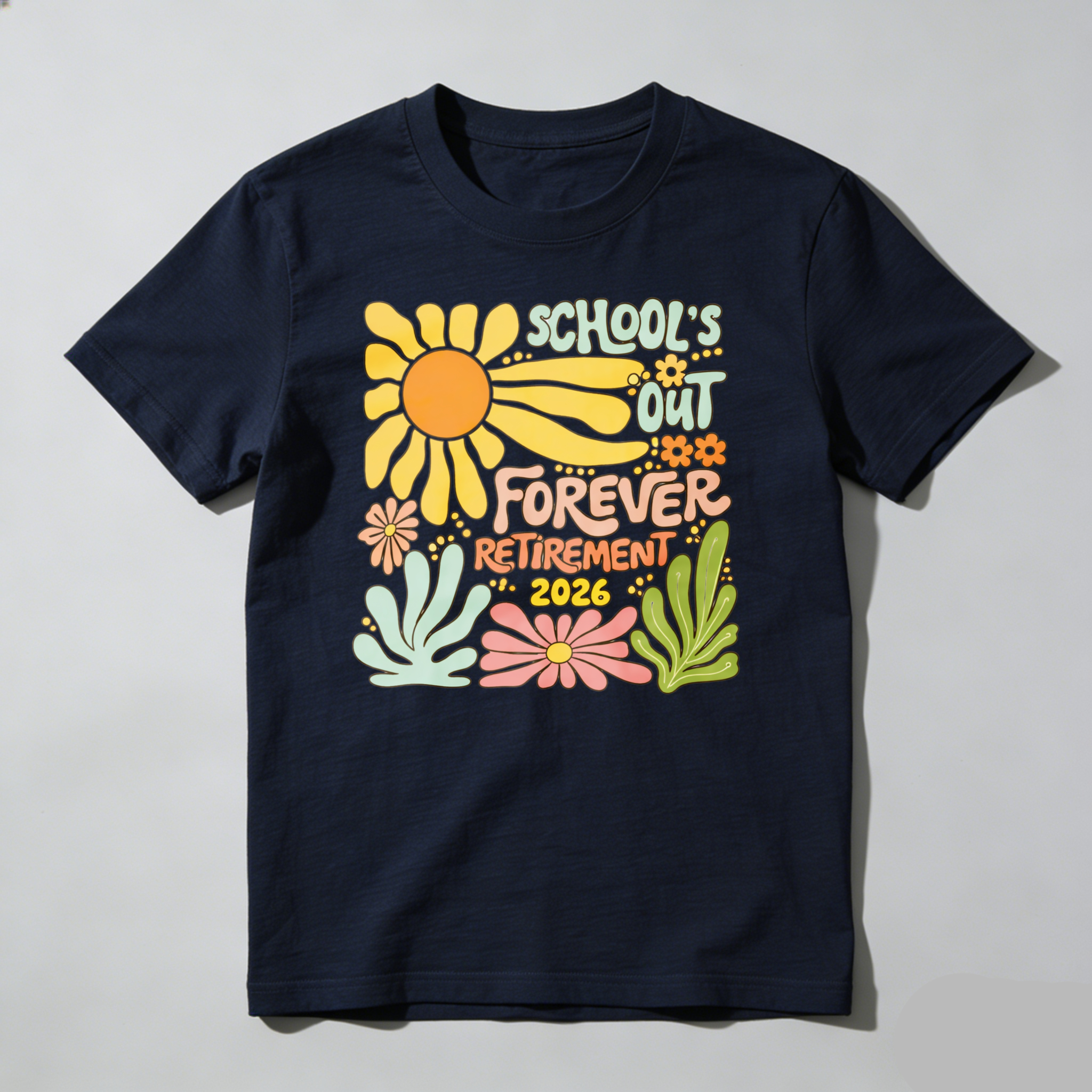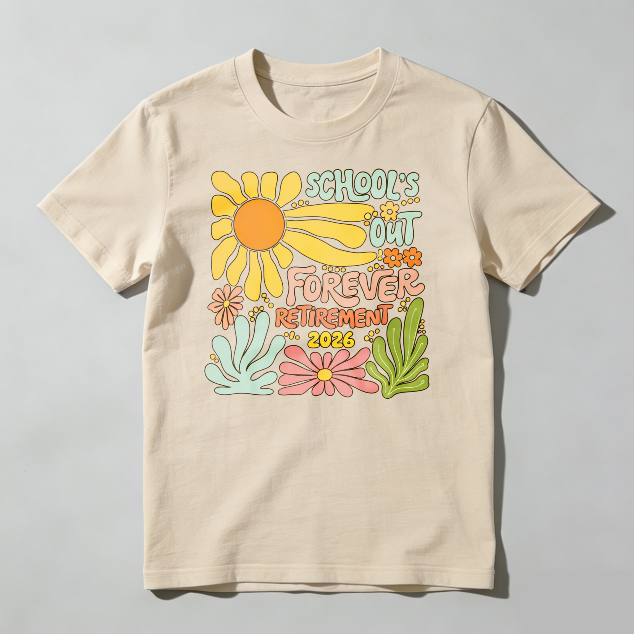 Clottya Schools Out Forever Retirement 2026 Flower Design T-shirt Summer Casual Wear