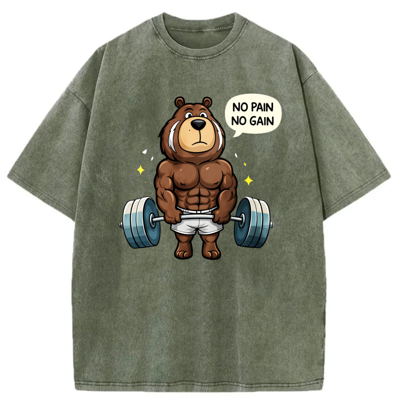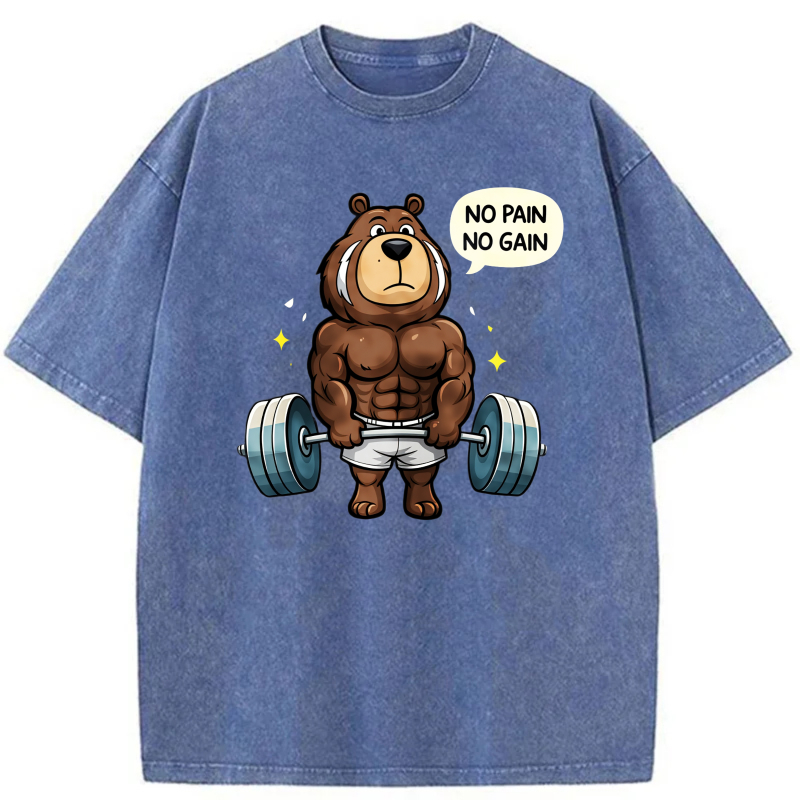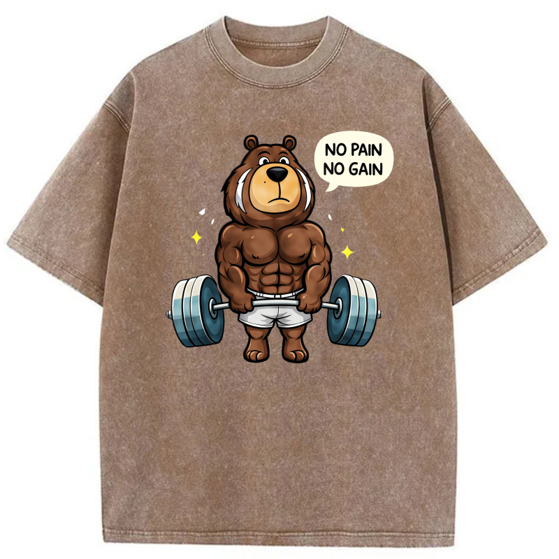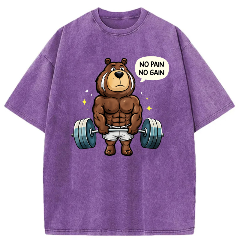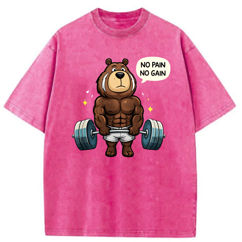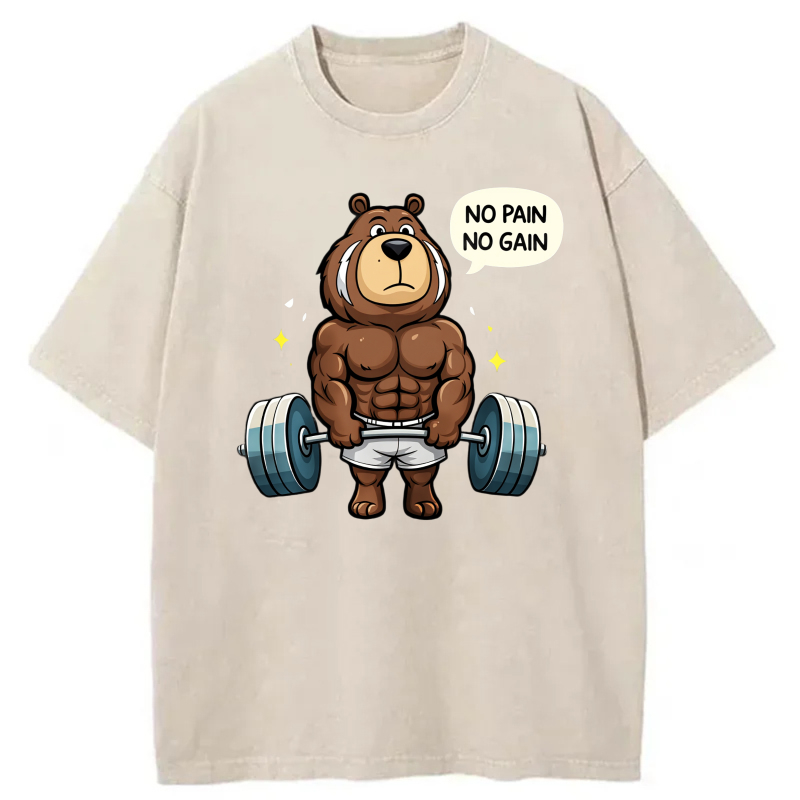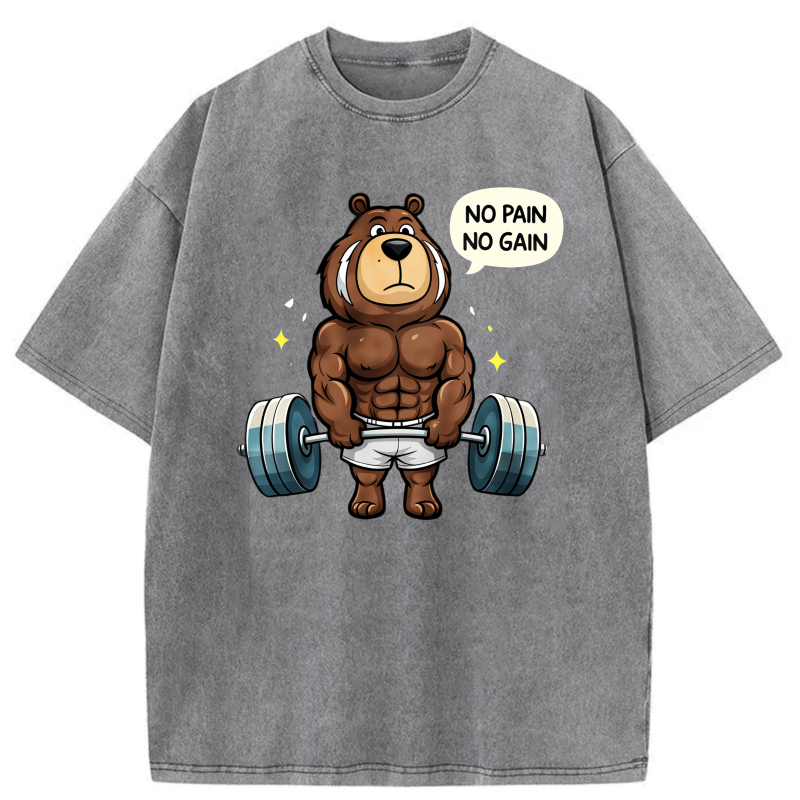 Clottya Unisex Washable T-shirt Bear Lifting Weight No Pain No Gain