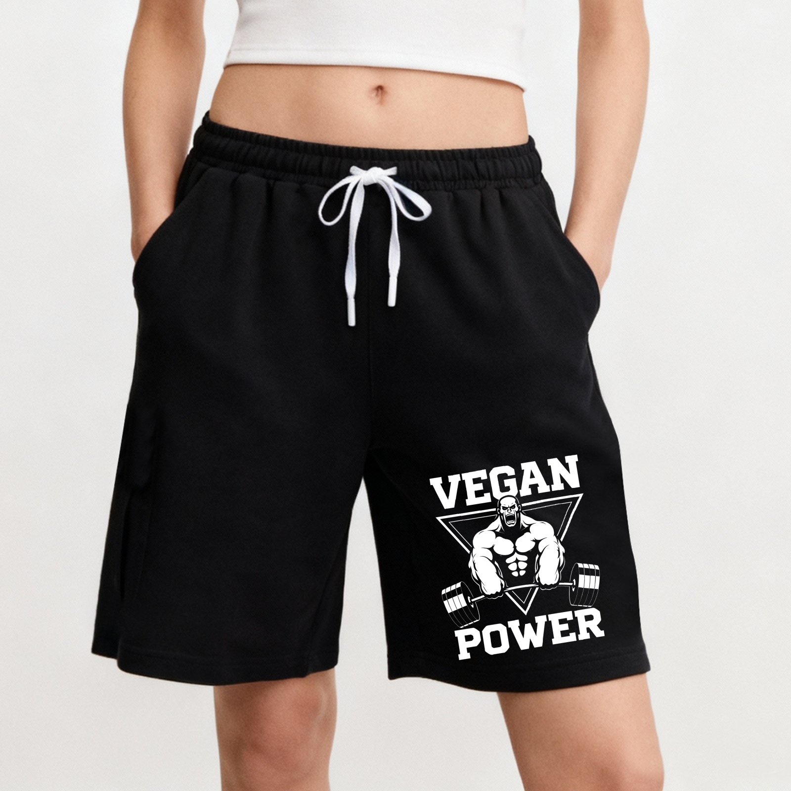 Clottya Vegan Power Muscle Man With Barbell Graphic Shorts